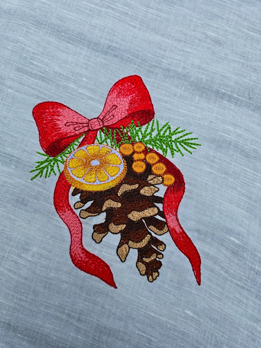 Стильный дизайн: Полотенце украшено машинной вышивкой в виде шишки, что придаёт ему особый шарм и делает его отличным подарком.