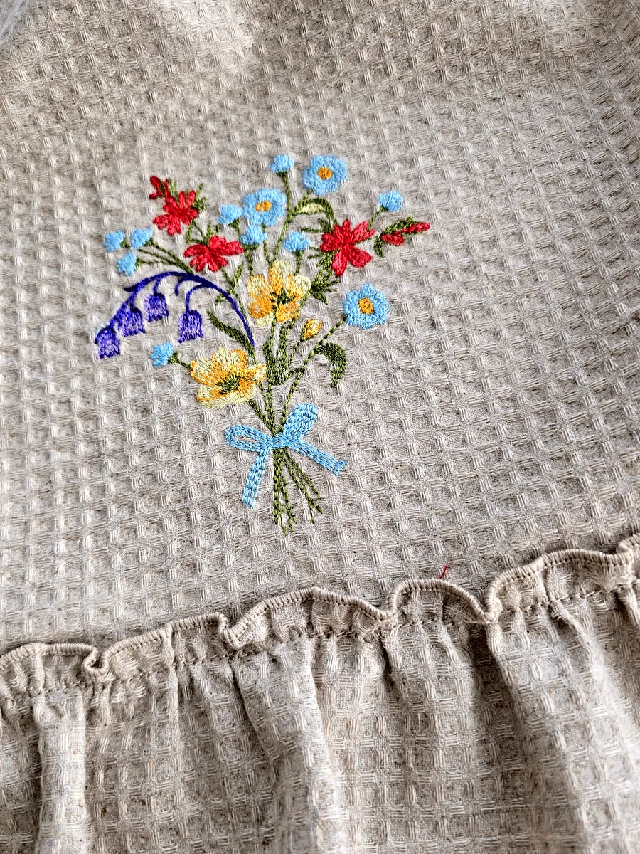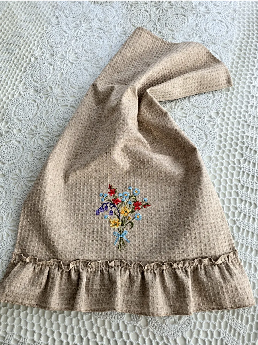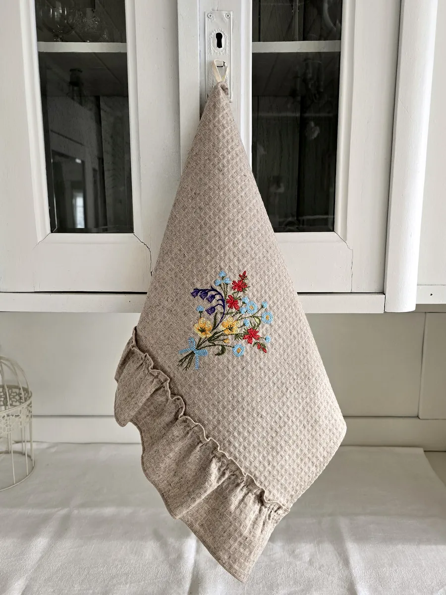 Представляем Вам дизайнерское льняное полотенце в стиле прованс с вышивкой "Полевые цветы".