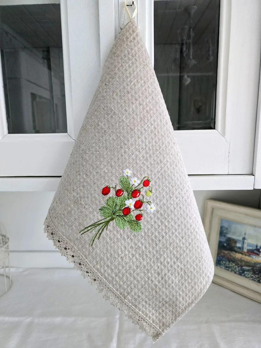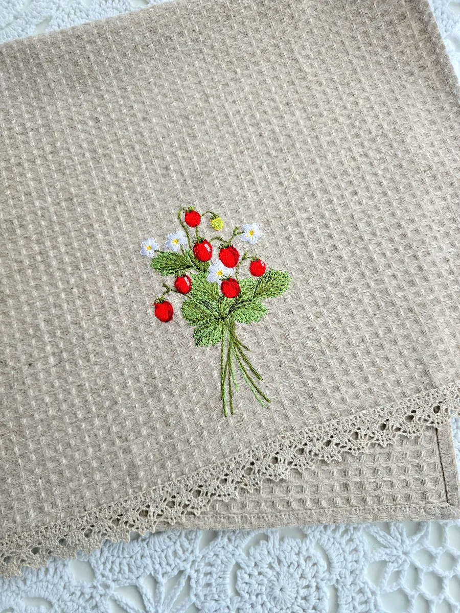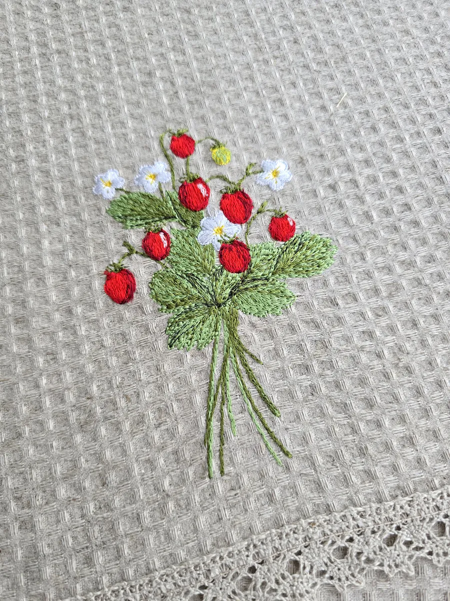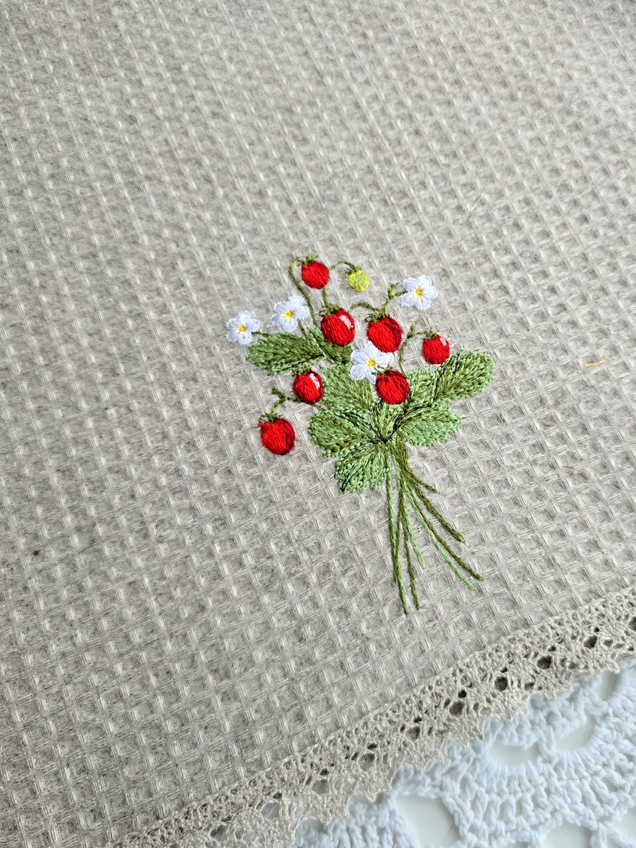 Представляем Вам дизайнерское льняное полотенце с вышивкой "Земляничка".