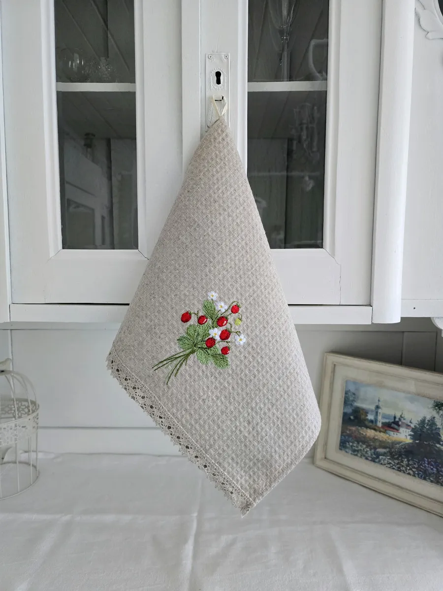 Размеры полотенца (35 × 60 см) оптимальны для ежедневного использования на кухне и позволят аккуратно разместить его возле раковины или плиты.