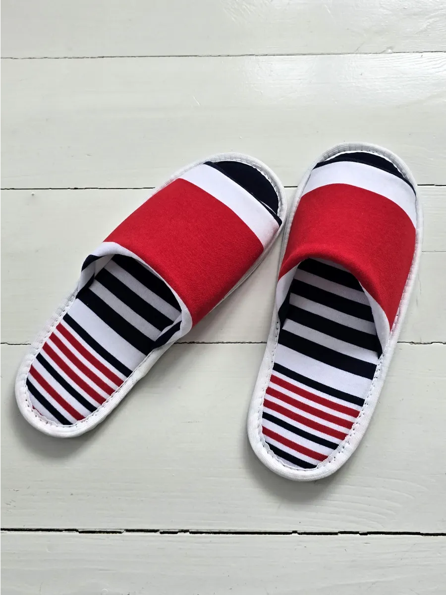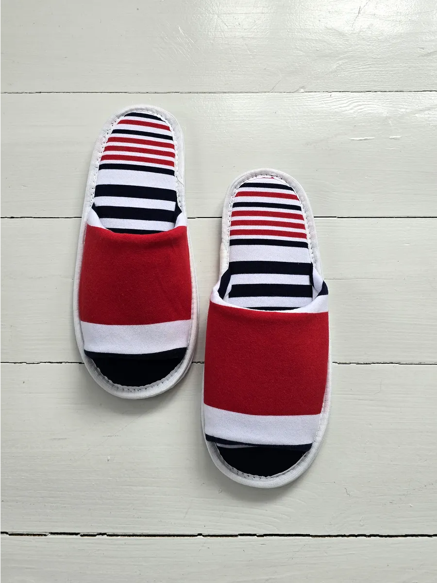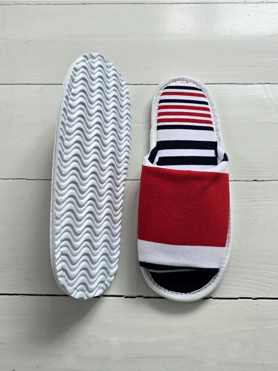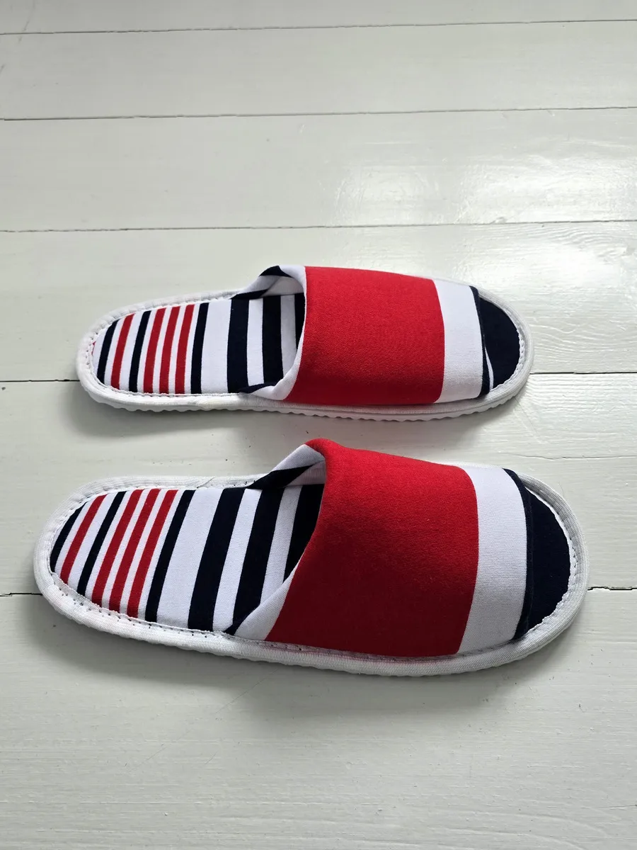 Тапочки подходят для использования в гостиницах, банях, саунах и в качестве гостевых тапочек. Забавный принт в ассиметричную полоску поднимает настроение. Эти тапочки станут отличным подарком на новоселье, 1 апреля или просто так, чтобы порадовать себя и близких.