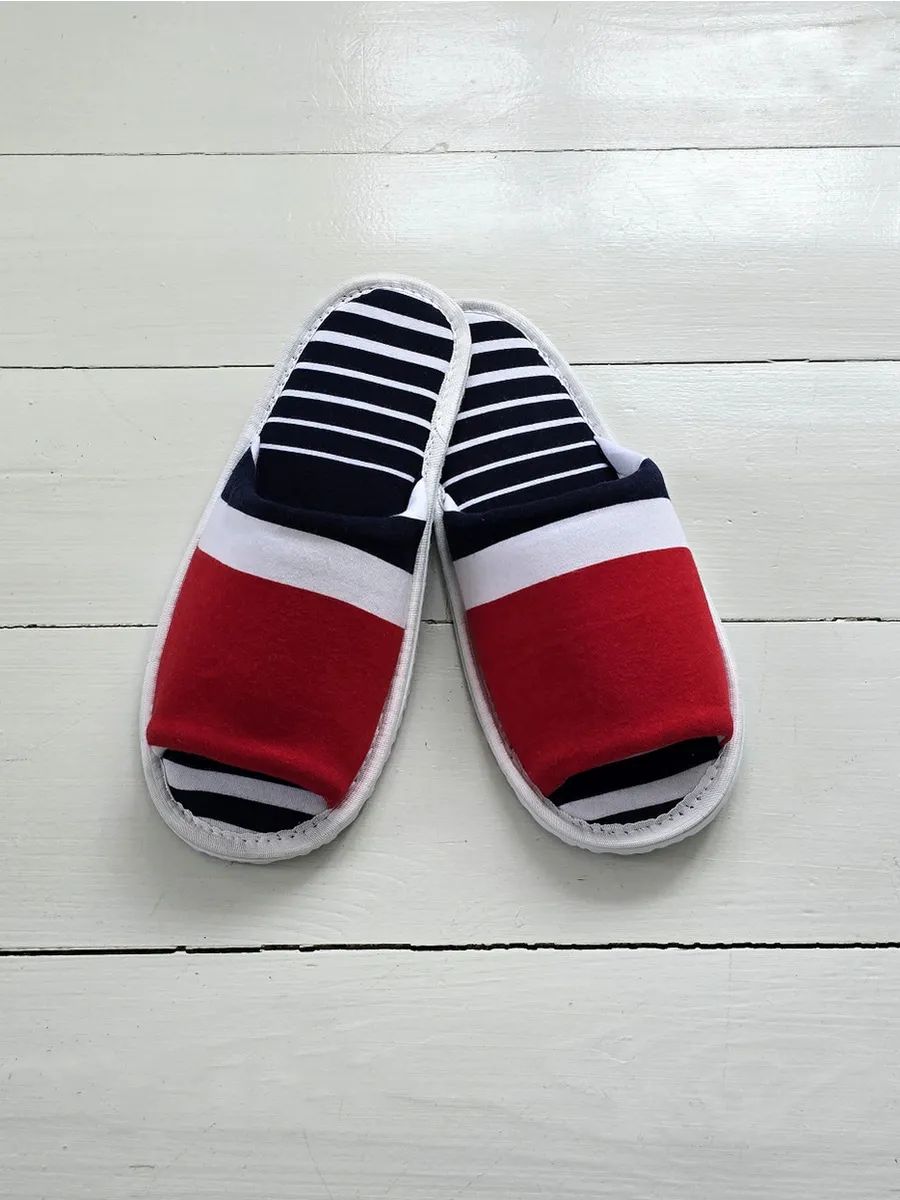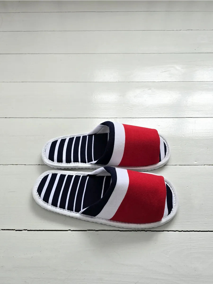 Тапочки подходят для использования в гостиницах, банях, саунах и в качестве гостевых тапочек. Забавный принт в ассиметричную полоску поднимает настроение. Эти тапочки станут отличным подарком на новоселье, 1 апреля или просто так, чтобы порадовать себя и близких.