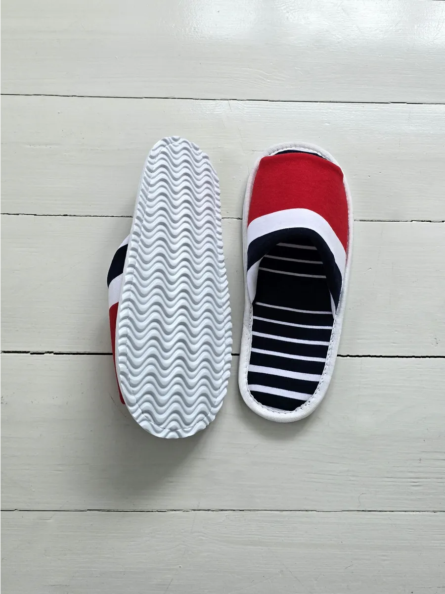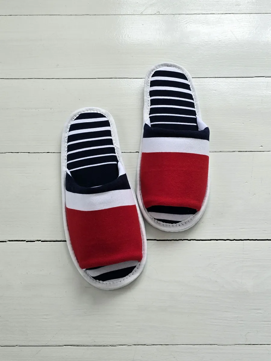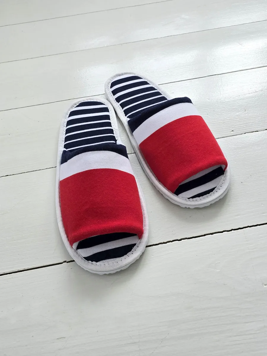 Женские открытые домашние тапочки из трикотажного хлопка в ассимитричную полоску