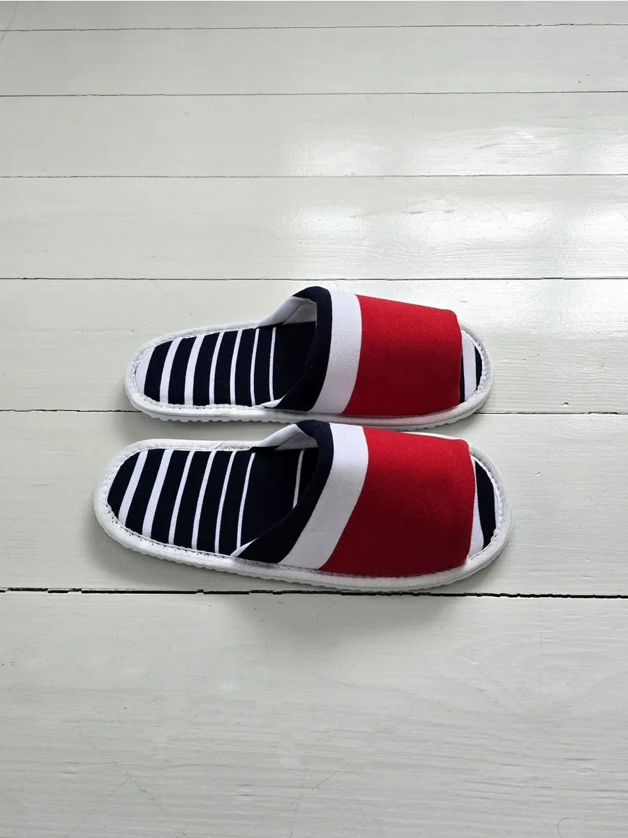 Тапочки подходят для использования в гостиницах, банях, саунах и в качестве гостевых тапочек. Забавный принт в ассиметричную полоску поднимает настроение. Эти тапочки станут отличным подарком на новоселье, 1 апреля или просто так, чтобы порадовать себя и близких.