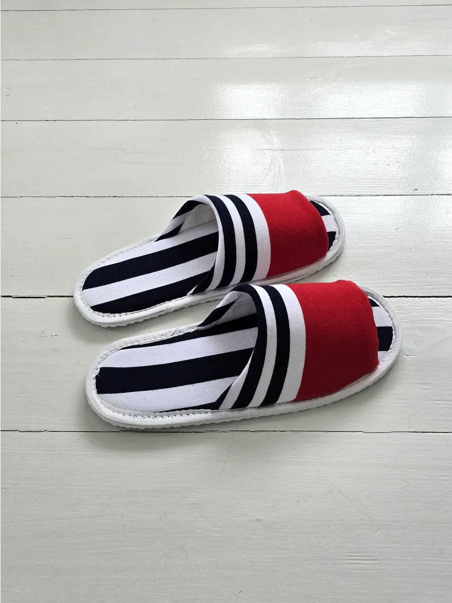 Тапочки подходят для использования в гостиницах, банях, саунах и в качестве гостевых тапочек. Забавный принт в ассиметричную полоску поднимает настроение. Эти тапочки станут отличным подарком на новоселье, 1 апреля или просто так, чтобы порадовать себя и близких.