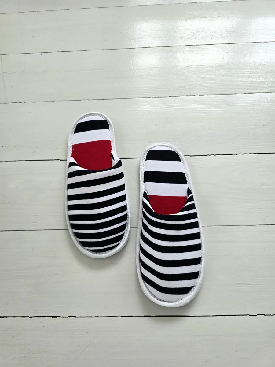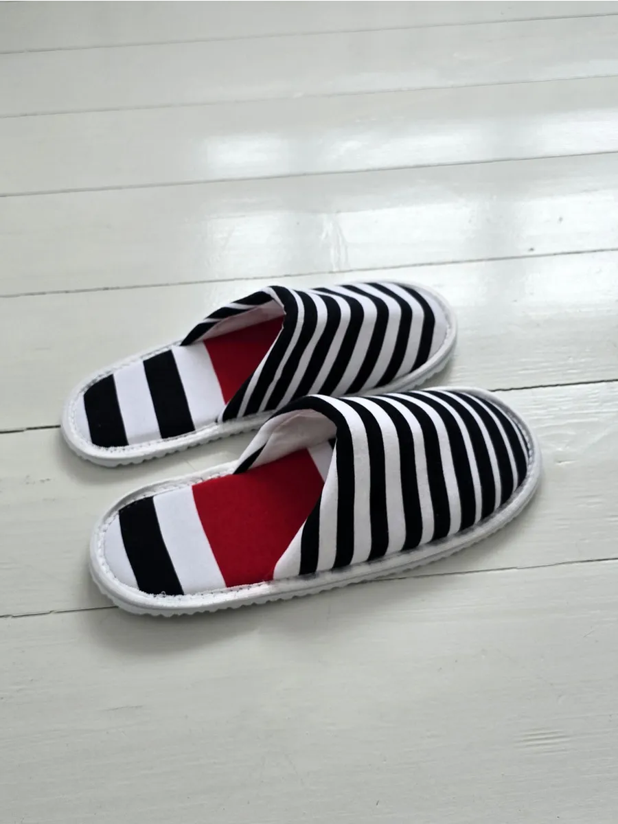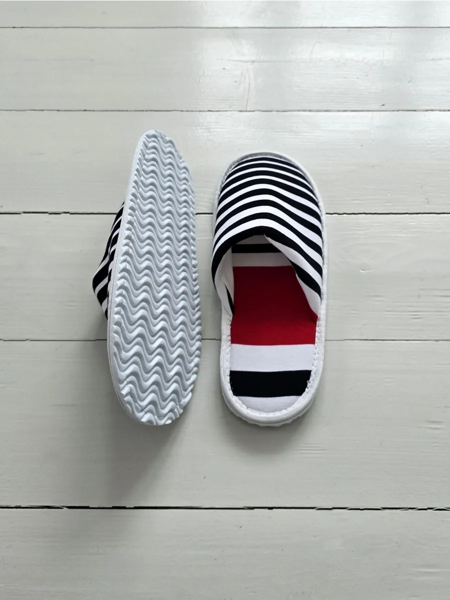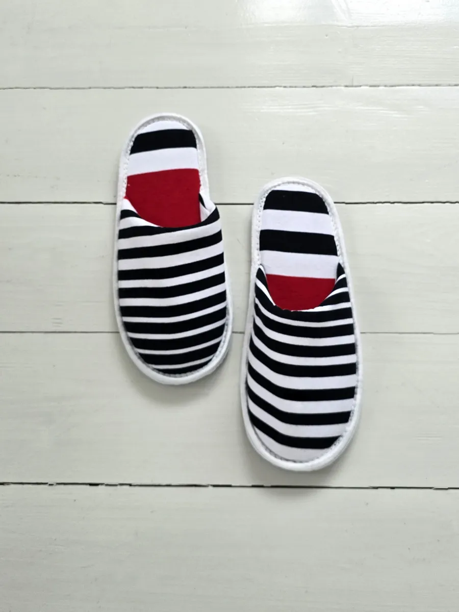Легкие тапочки из трикотажного хлопка – это идеальный выбор для комфортного отдыха дома. Изготовленные из натурального хлопка, они подарят вашим ногам приятную мягкость и уют. Закрытый мысок защитит от случайных ударов, а тонкая подошва из ЭВА обеспечит легкое и бесшумное передвижение по дому. Забавный принт в ассиметричную полоску поднимает настроение. Эти тапочки станут отличным подарком на новоселье, 1 апреля или просто так, чтобы порадовать себя и близких.