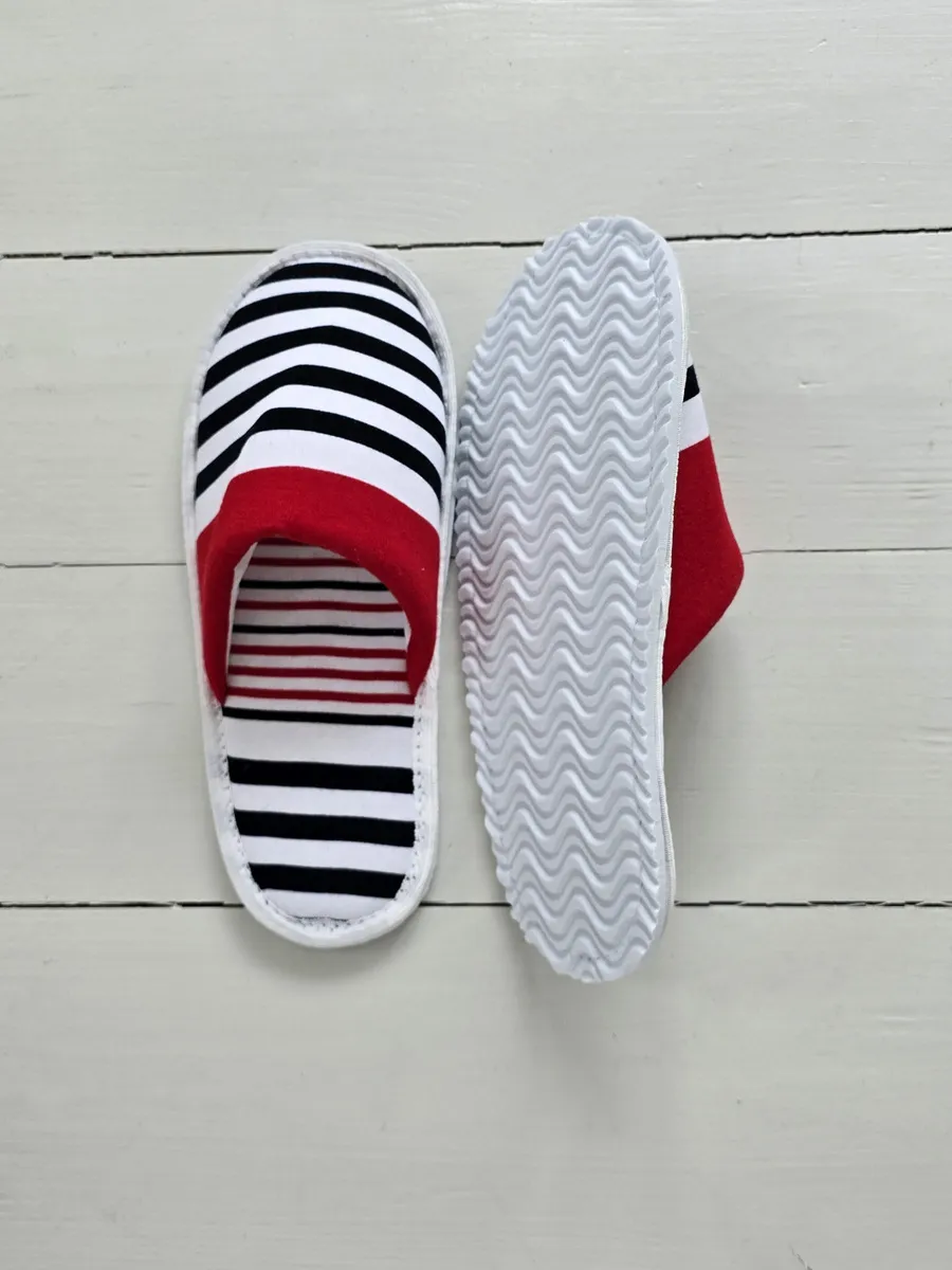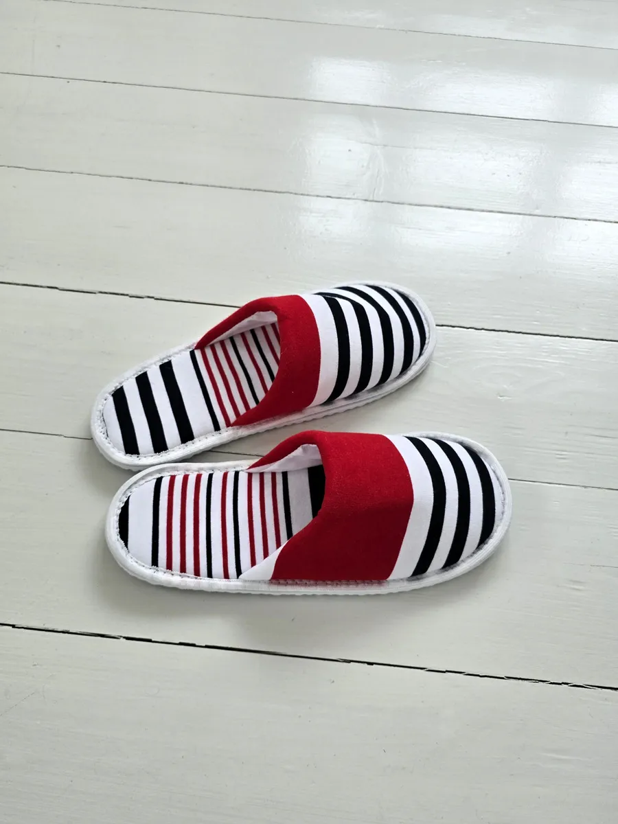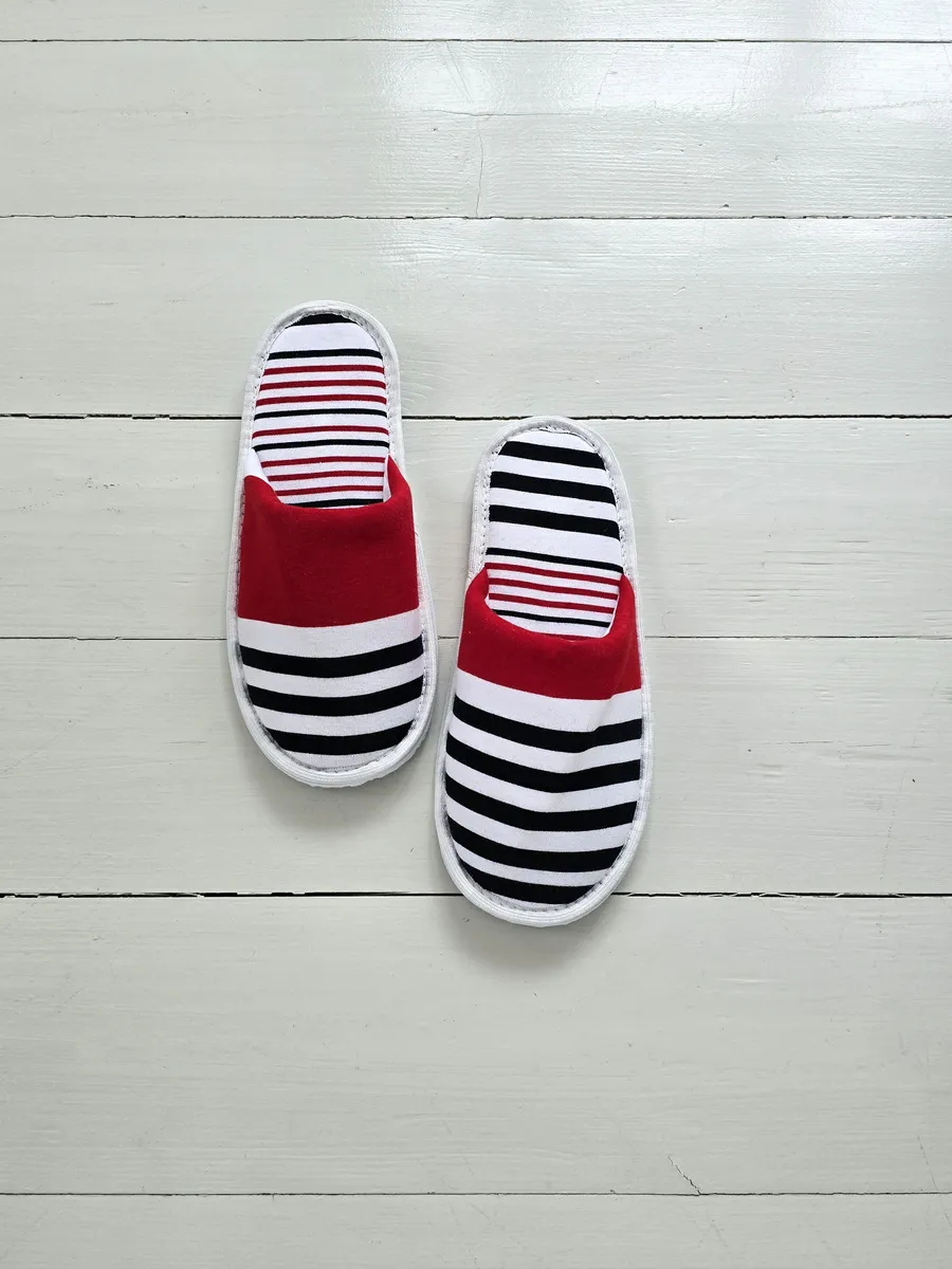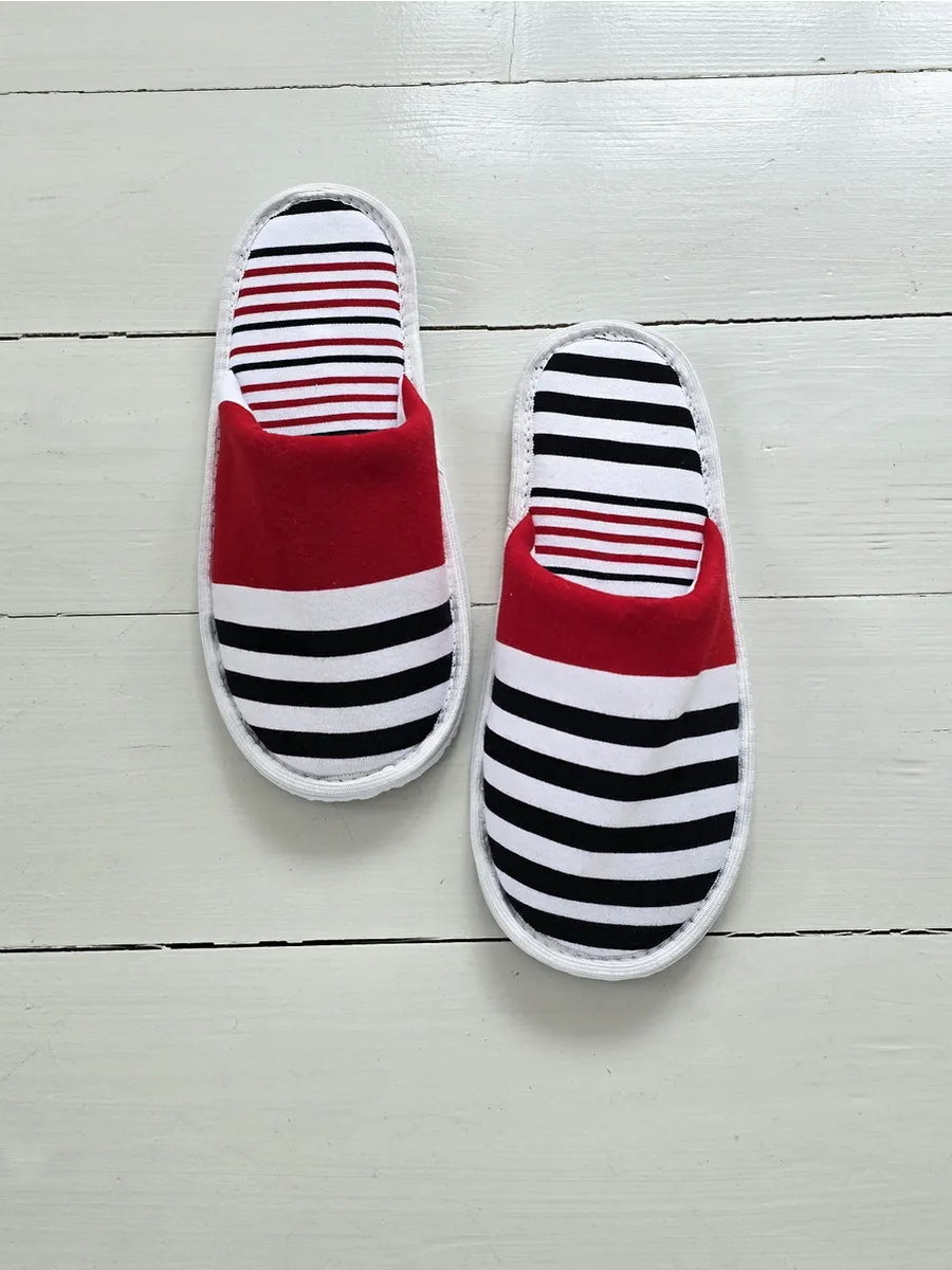 Легкие тапочки из трикотажного хлопка – это идеальный выбор для комфортного отдыха дома. Изготовленные из натурального хлопка, они подарят вашим ногам приятную мягкость и уют. Закрытый мысок защитит от случайных ударов, а тонкая подошва из ЭВА обеспечит легкое и бесшумное передвижение по дому. Забавный принт в ассиметричную полоску поднимает настроение. Эти тапочки станут отличным подарком на новоселье, 1 апреля или просто так, чтобы порадовать себя и близких.